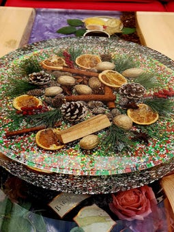 Epoxy Resin Christmas Tray, Pinecones, Dried Oranges, Handmade
