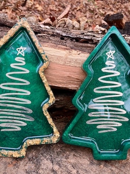 Green Resin Christmas Tree Tray | Gold Leaf Holiday Dish | Handmade Resin Décor | Christmas Gift | Festive Trinket Tray