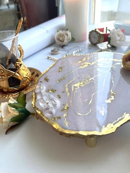 Handcrafted Marble Texture Resin Tray in Soft Pink and Gold. Gift for her.Vanity Tray. Decorative Tray,Jewelry Tray with legs.Christmas Gift