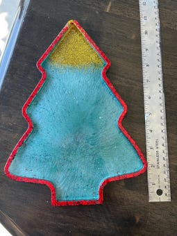 Handmade Christmas Tree Resin Tray: Glitter Holiday Decor | Green Plate