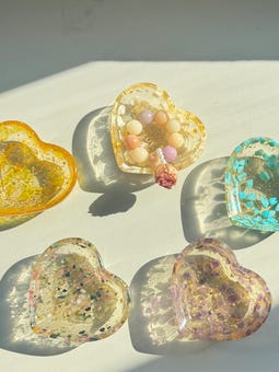 Heart-Shaped Crystal Resin Jewelry Tray: Handmade Vanity Decor(C8)